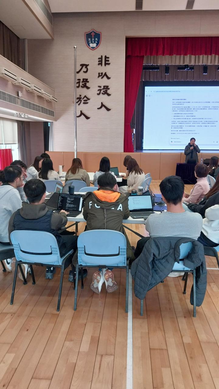 2026年1月2日舉行了「如何利用AI與各科進行教學融合」工作坊,旨在介紹AI技術在教學中的應用,幫助教師提升教學效能、設計互動性強的課程以增強學生的學習興趣,以及探索AI在不同學科的新教學方法與學習模式。